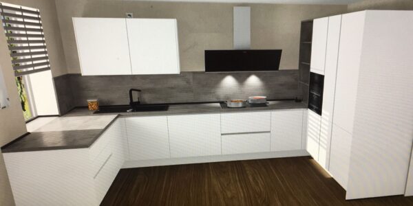 – EBK inkl. Kühl-/Gefrierkombination, Geschirrspüler, Ceranherd mit Dunstabzugshaube, Backofen